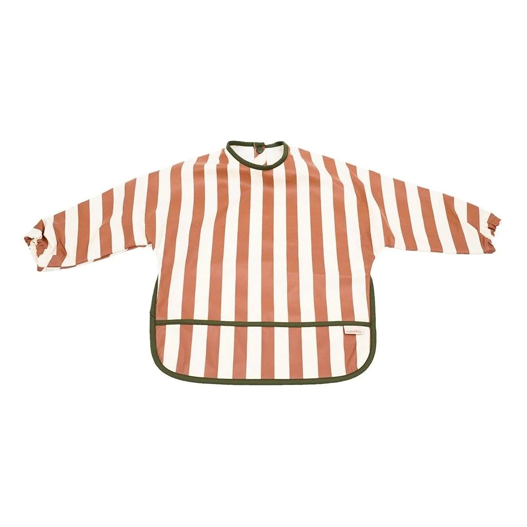 • Babete para crianças riscas castanho e branco com mangas compridas