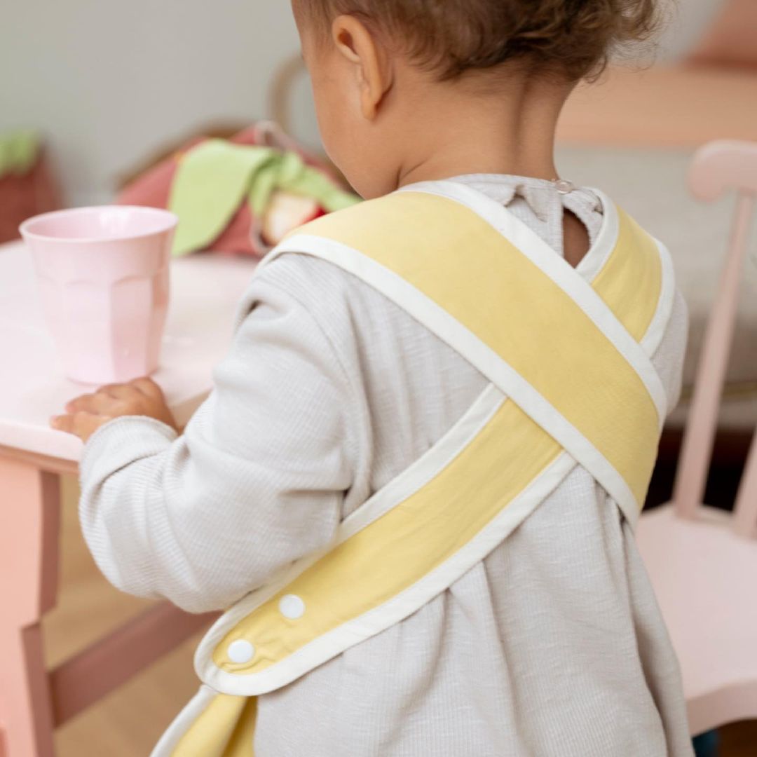 ♡ Babete - Cross Back. O prático e orgânico Babete Cross Back da Fabelab tem um revestimento acrílico, o que o torna mais durável quando o seu pequeno faminto está a desfrutar de uma refeição adorável e bagunçada! O babete tem um bolso frontal para recolher todos os pequenos pedaços de comida e é fechado na parte de trás com botões ajustáveis.