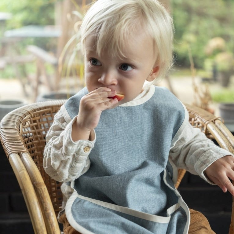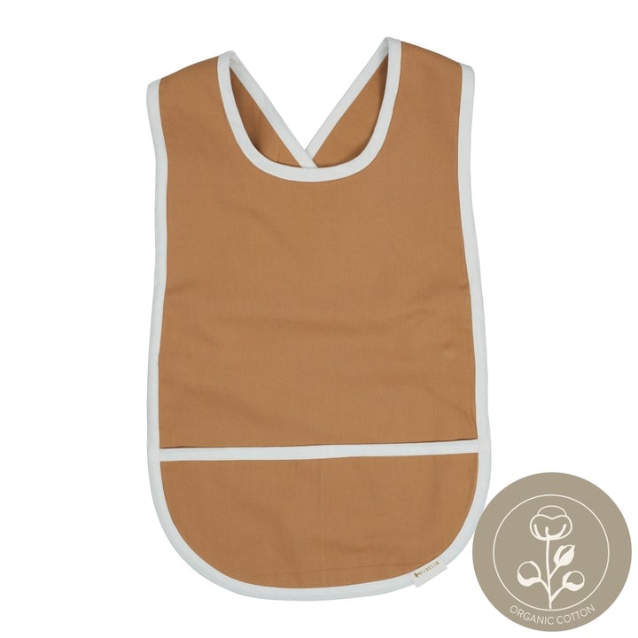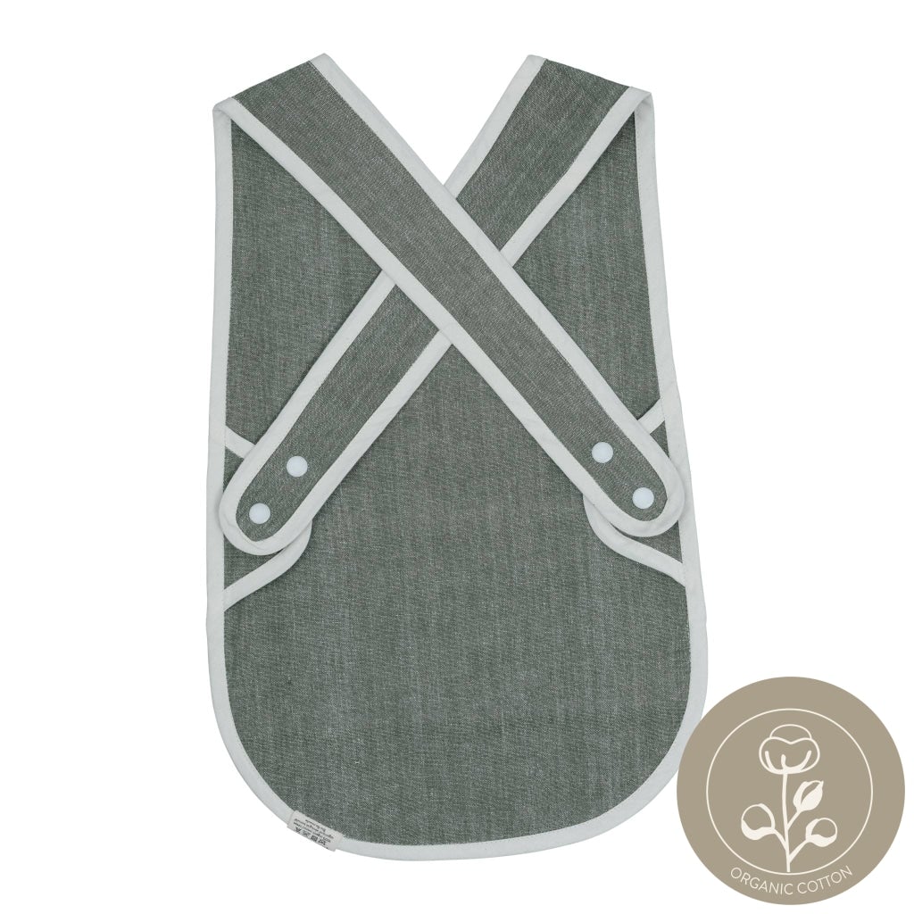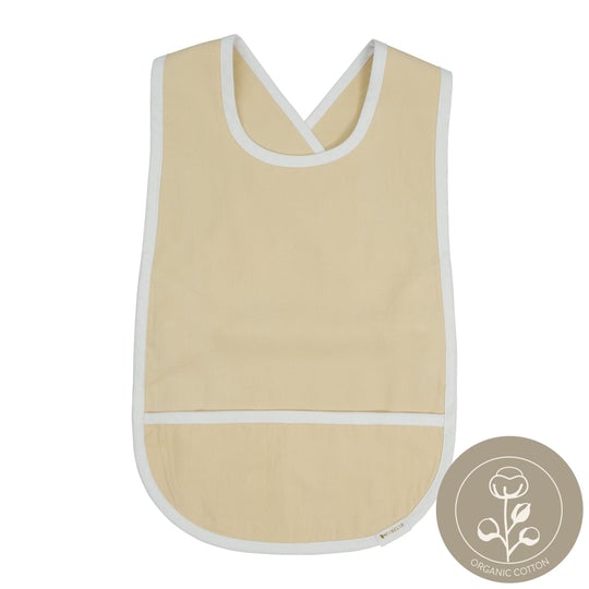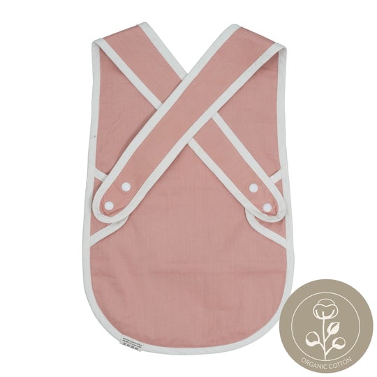 ♡ Bib - Cross Back. Fabelab's practical, organic Cross Back Bib has an acrylic coating, which makes it more durable when your hungry little one is enjoying a lovely and messy meal! The bib has a front pocket to collect all small bits and pieces of food and is closed in the back with adjustable buttons.