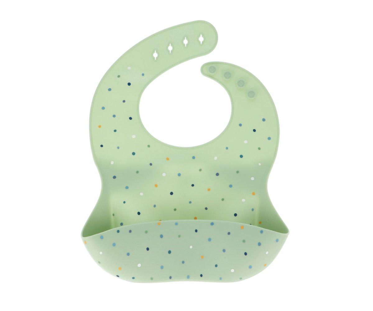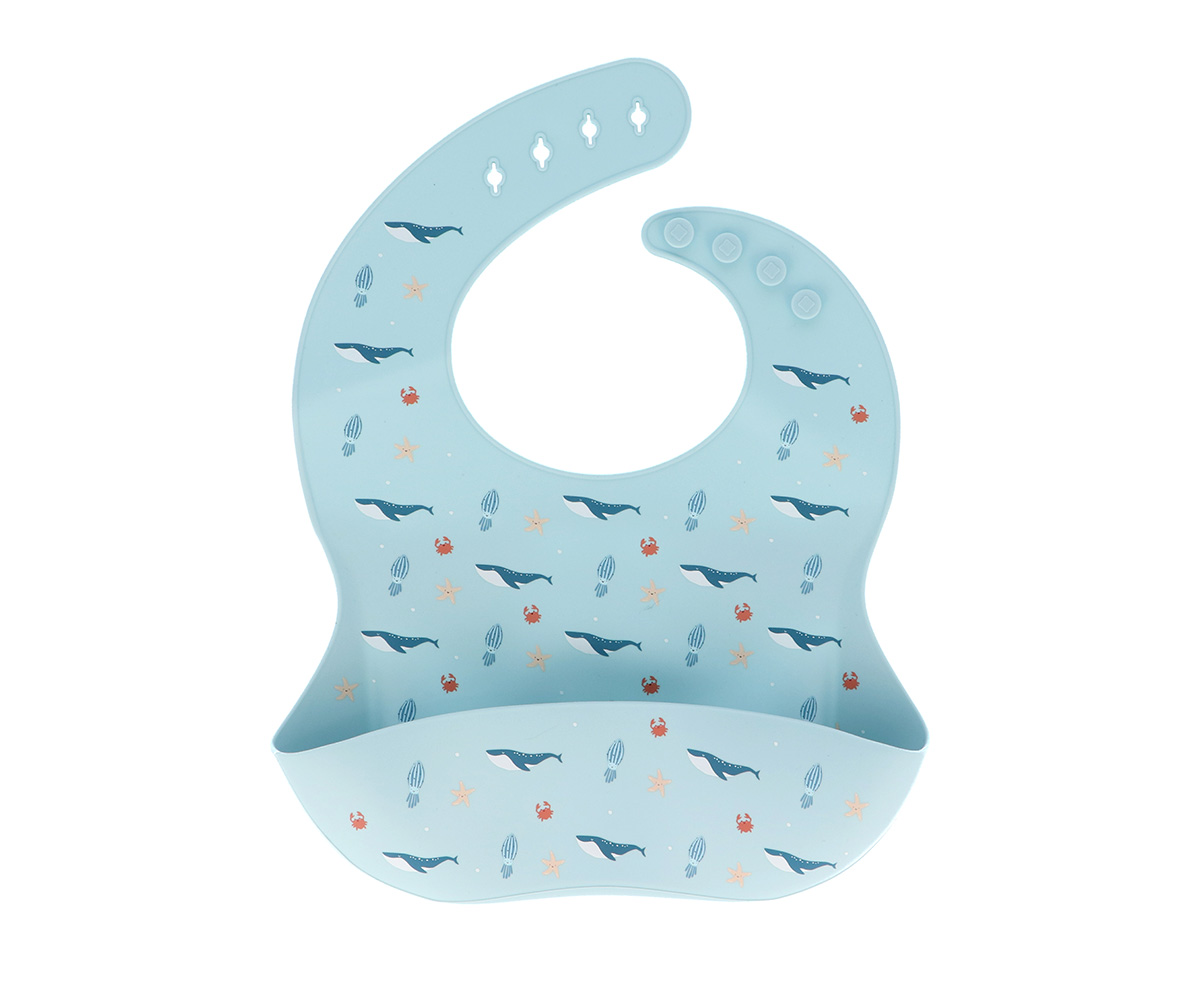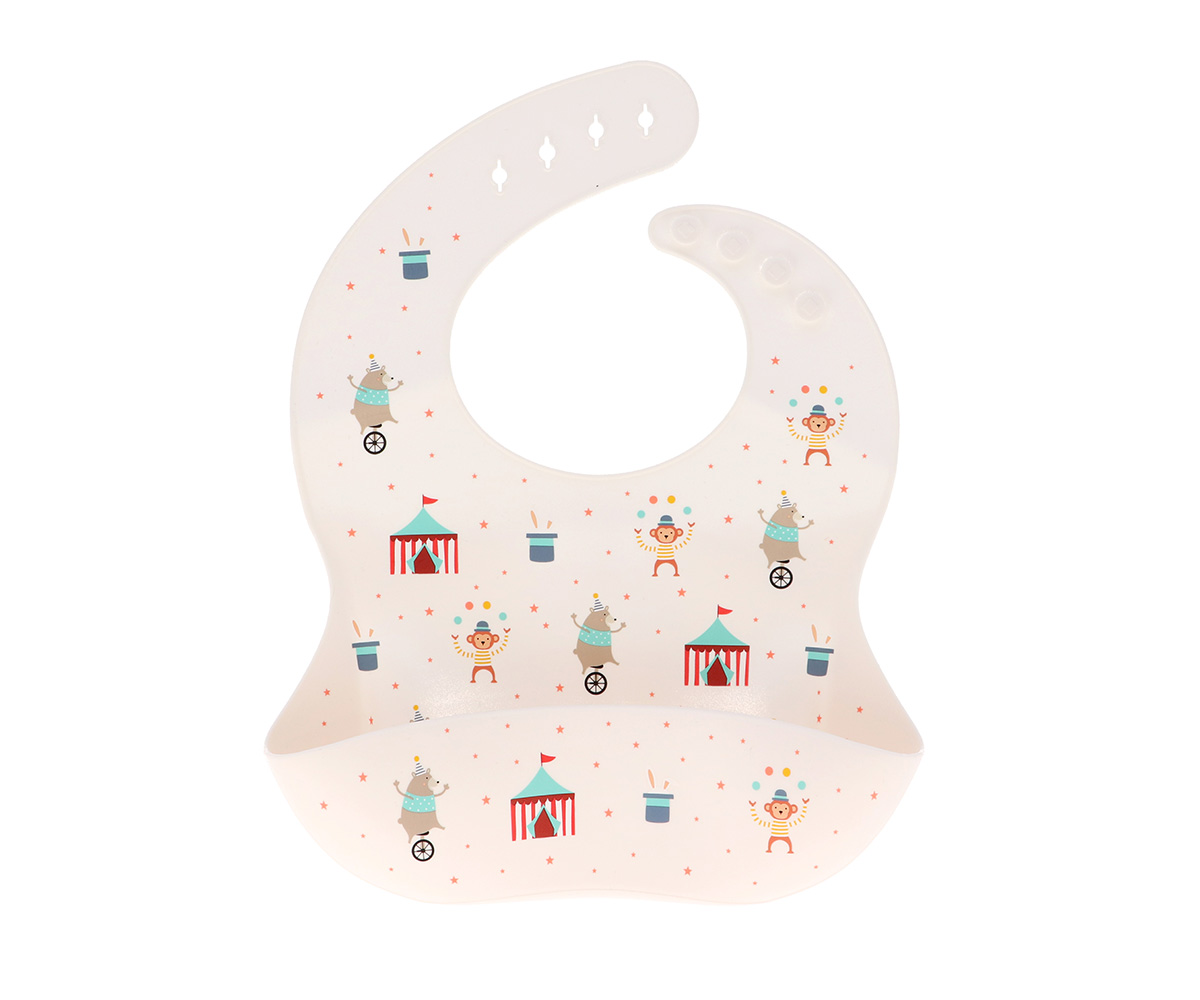 Caracteristicas • Feito de silicone de grau alimentício de alta qualidade; • Fecho de pescoço com 4 medidas; • Pode ser lavado na máquina de lavar louça; • Livre de BPA, PVC e Ftalatos; • A partir de 6 meses.