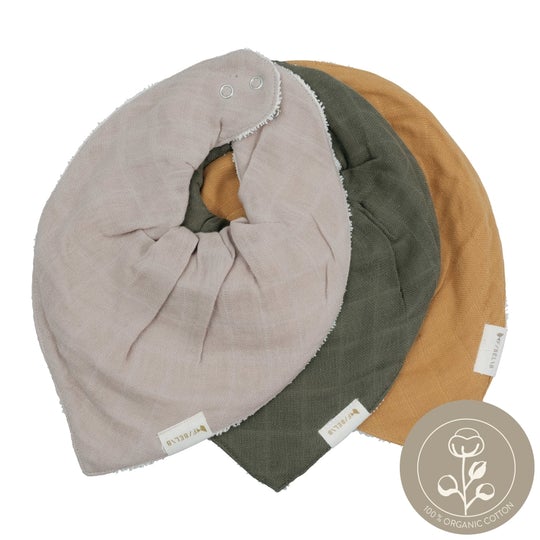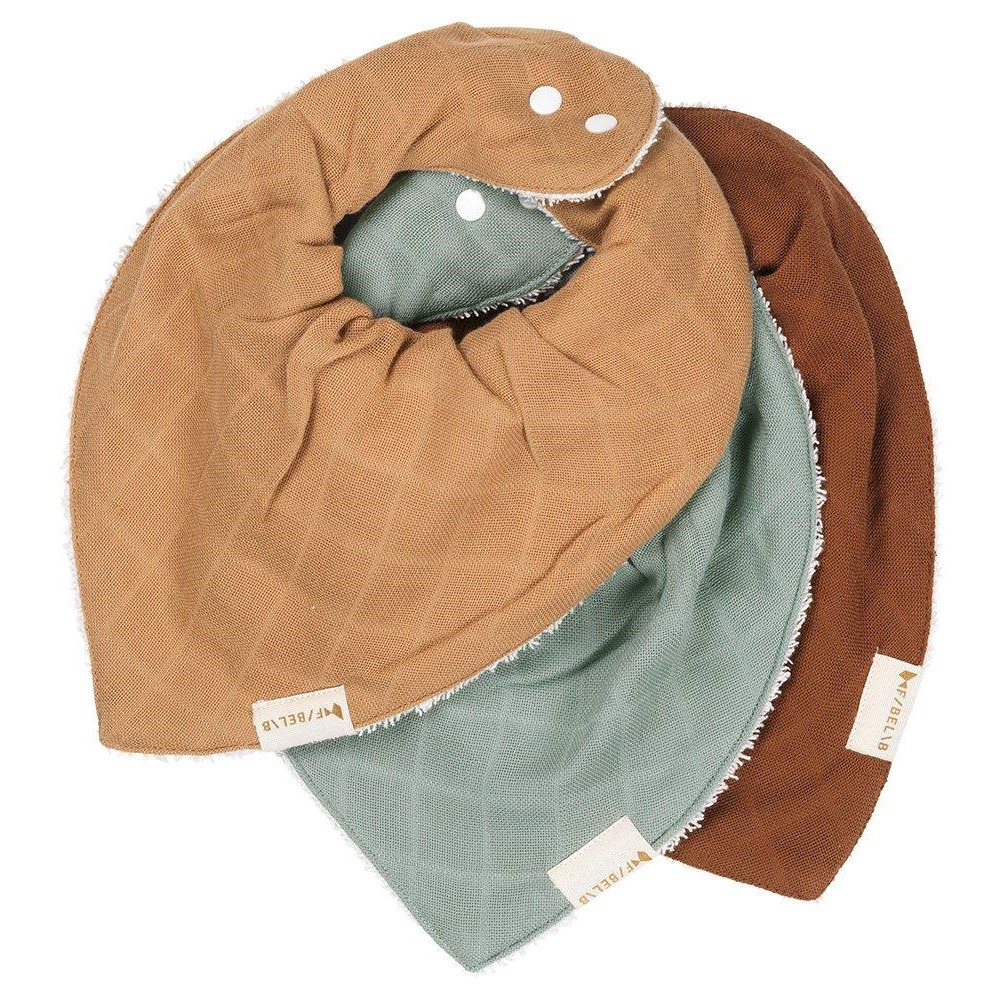 ♡ Fabelab's Bandana Bib is with its design shape and big circumference both cool and practical. The bib has terry on the back side, which makes it stay in place and gives it a higher suction power.
