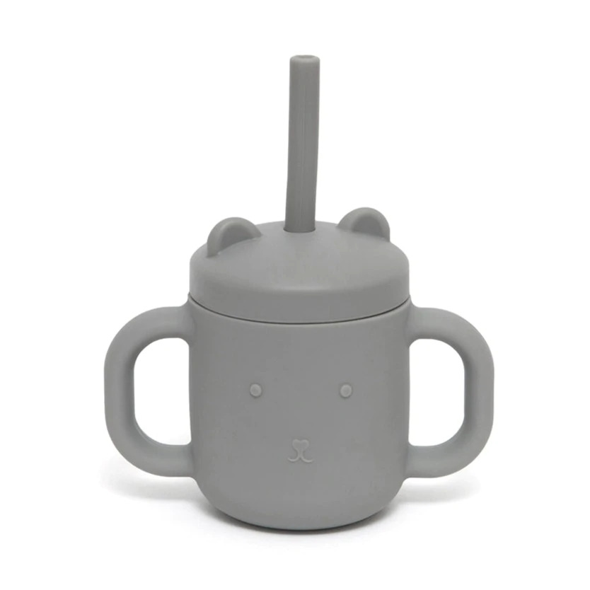 • Copo de treino cinzento com palhinha e orelhas de ursinho