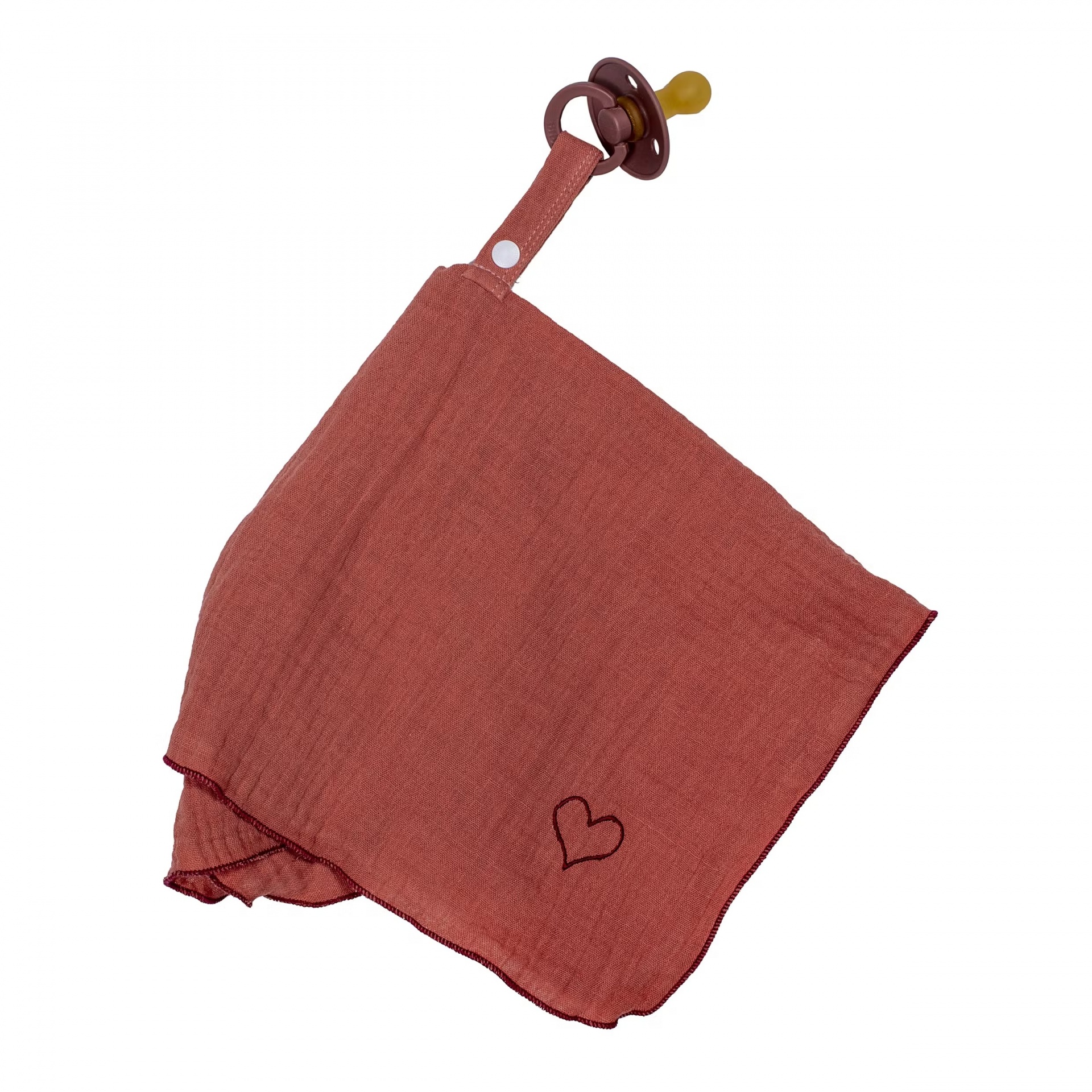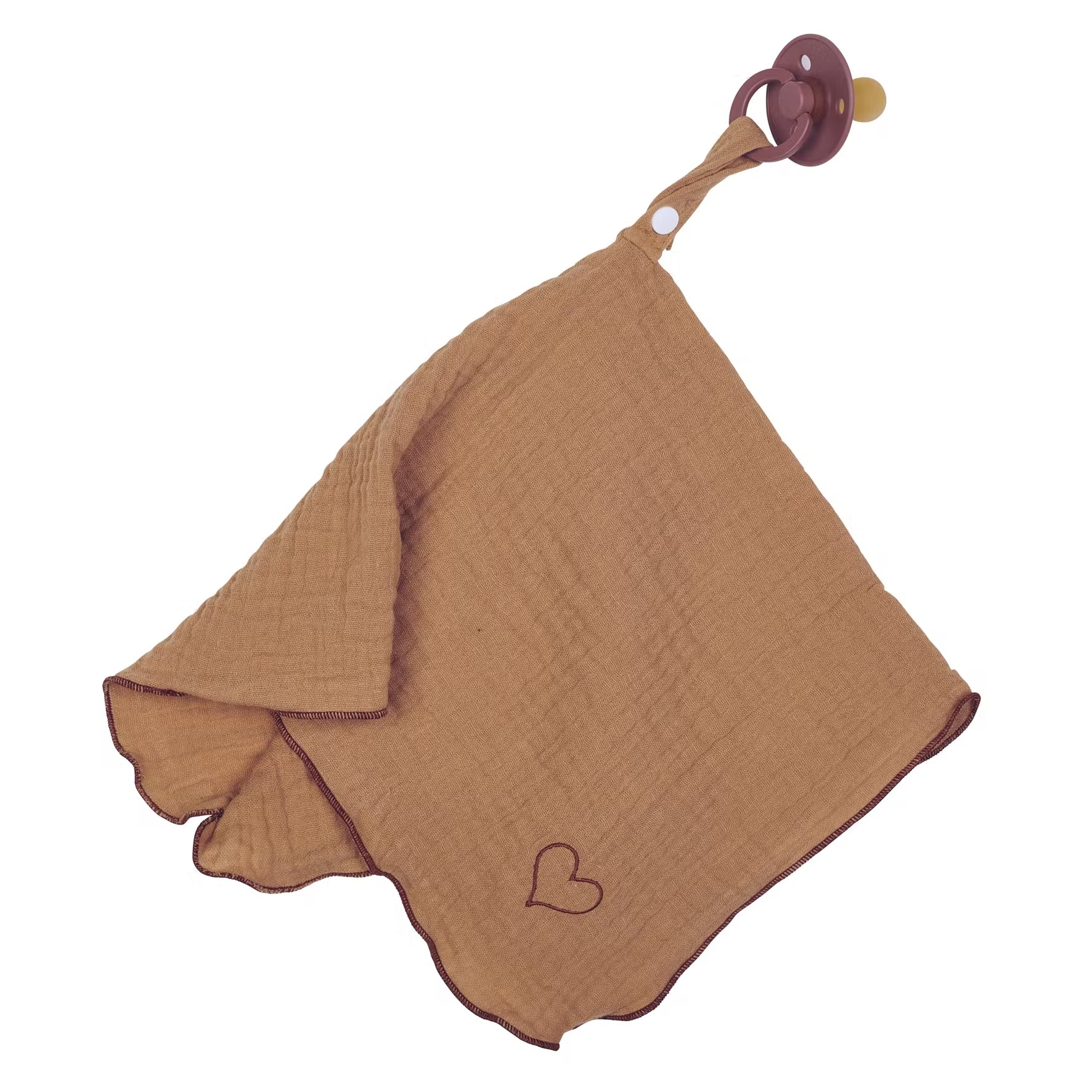 • Manta castanho claro com chupeta castanha e detalhe de coração bordado