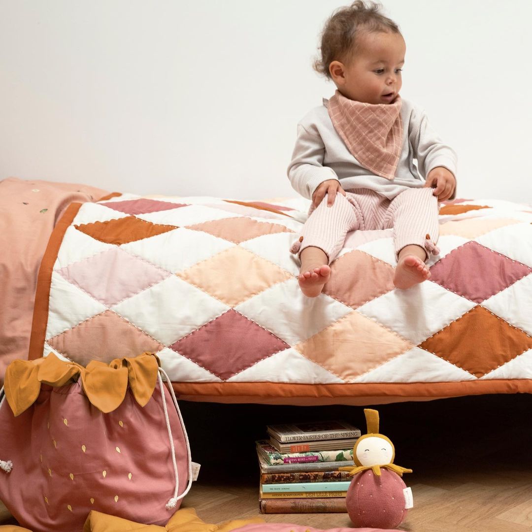 ♡ Fabelab's Fold-over bib is a brand new style in the line of bibs and the design is more casual and cool. The bib has a grid pattern and is made in a soft muslin texture with a solid color on the one side and a pale color on the other. The bib is reversible and has therefore two looks.