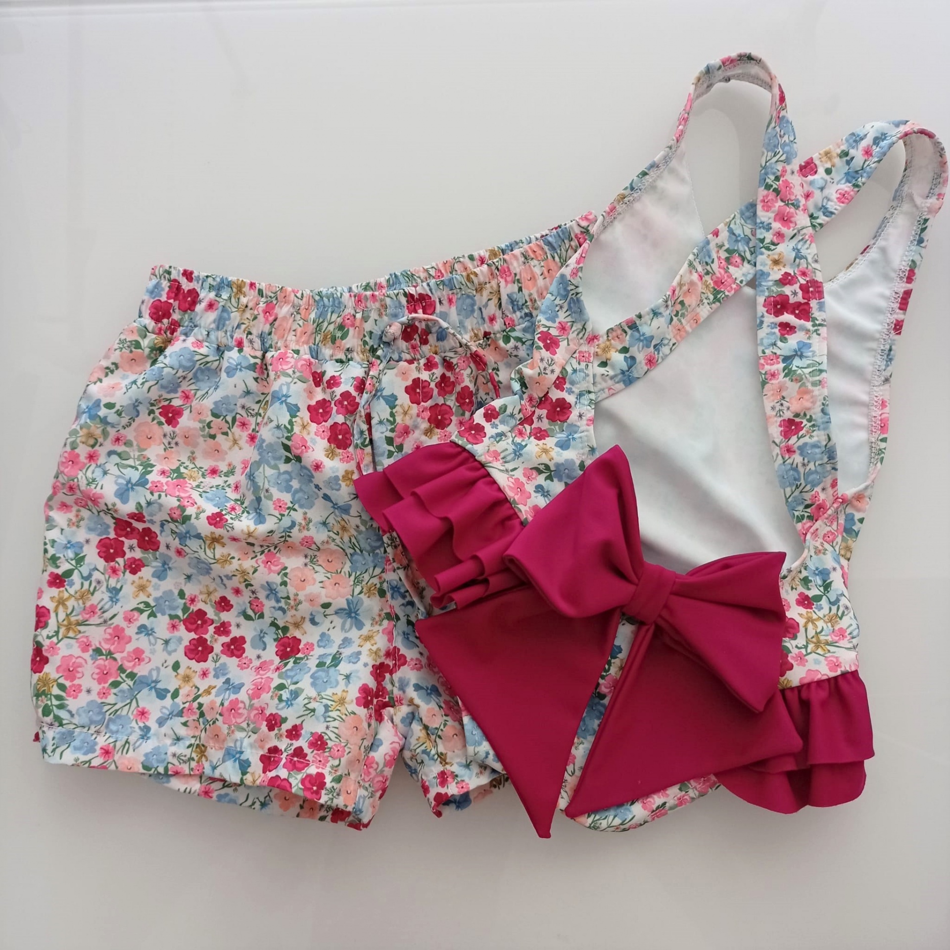 • Calções florais para criança com cós elástico sobre fundo branco