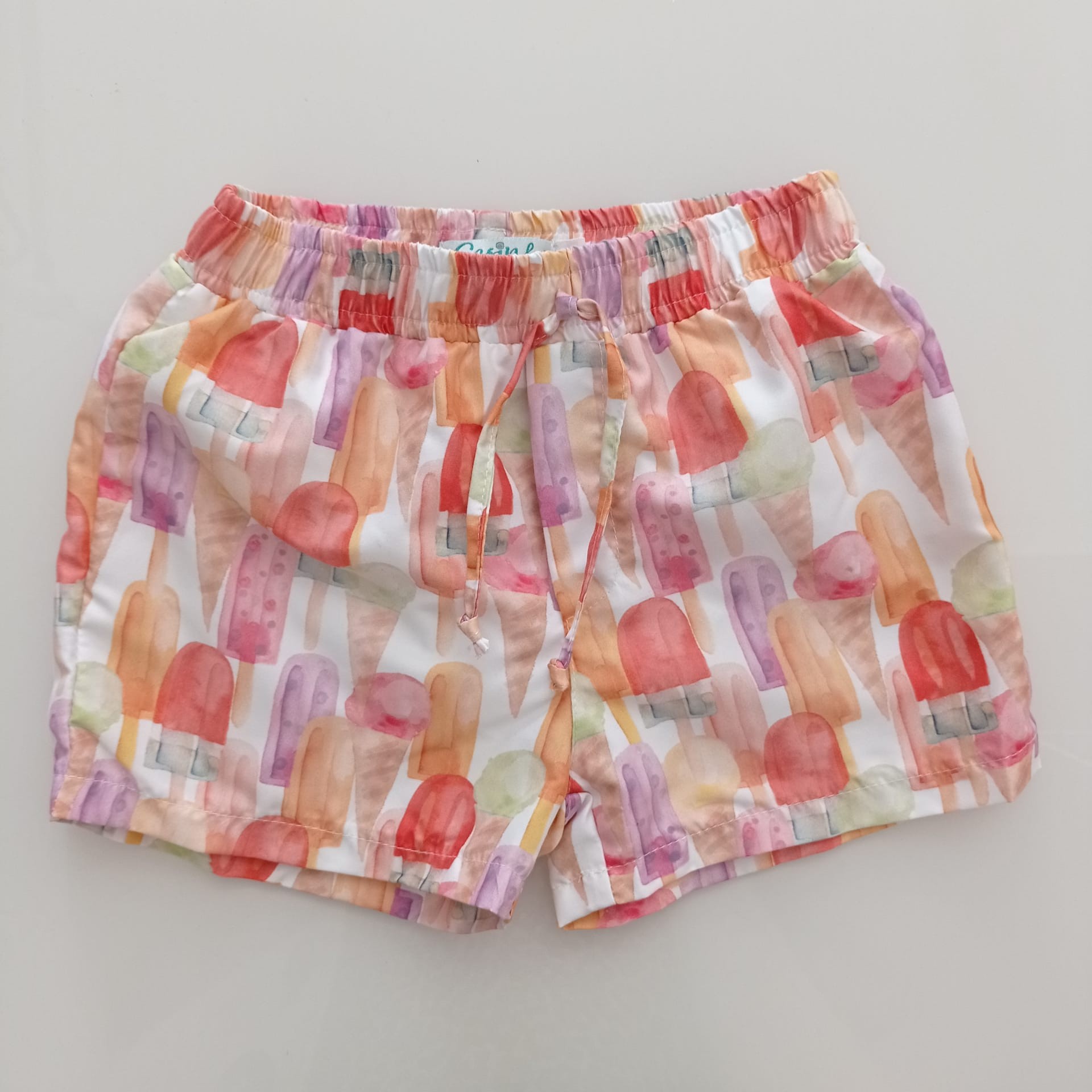 • Calções de criança com padrão de gelados coloridos e cintura elástica