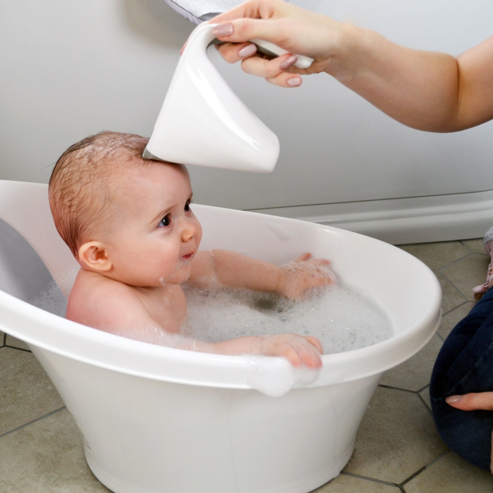 ♡ The perfect bathtime accessory for all ages. Create happy bathtimes with Washy, the clever rinsing bath jug from Shnuggle. Designed with a soft rim to gently rest against the contour of baby's head, helping to direct water away from sensitive little eyes. The soft feel handle allows you to comfortably rinse baby's hair and has been designed to neatly hook onto the Shnuggle Baby and Toddler baths for easy access and storage.