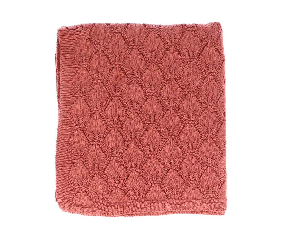 • Manta de malha rosa com padrão geométrico em relevo