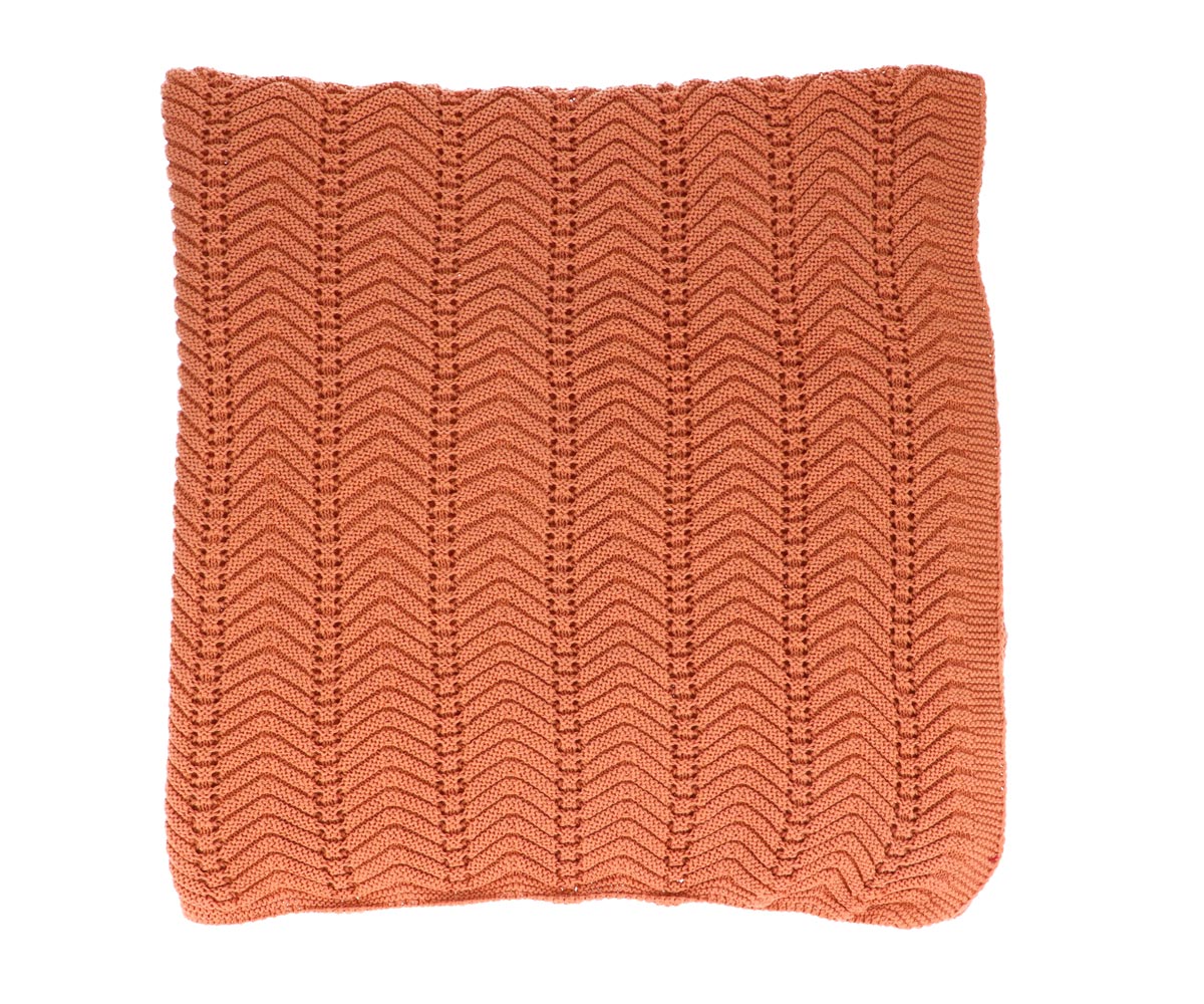 • manta tricotada castanho avermelhado com padrão de ondas