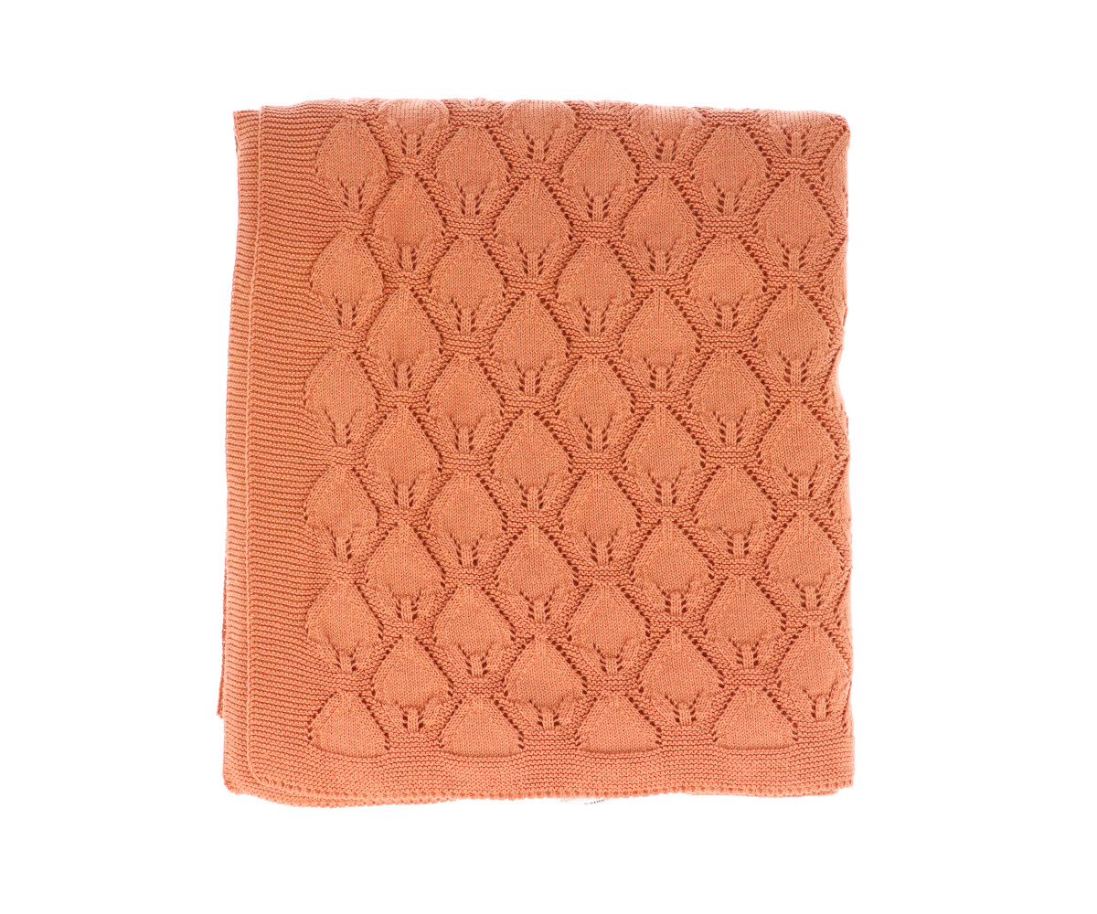 • Manta laranja de tricô com padrão geométrico