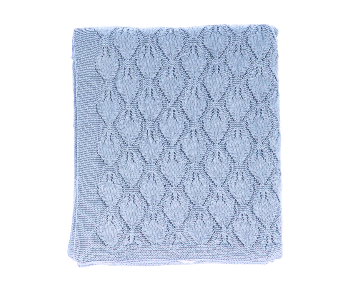 • Manta de lã azul clara com padrão geométrico em relevo