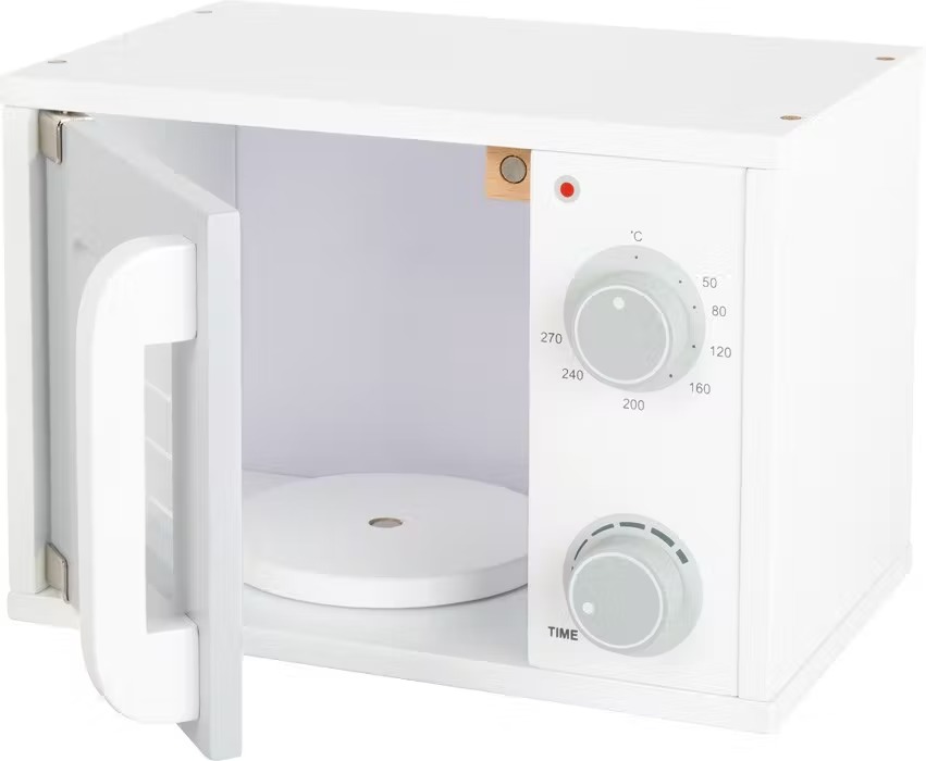 ♡ Ping... a comida está pronta! Com este micro-ondas de brincar feito de madeira, os alimentos preparados são aquecidos e preparados em pouco tempo. A plataforma giratória e a porta segura por um íman oferecem diversão realista. As entradas de temperatura e tempo podem ser ajustadas rodando os botões com sons de clique. Um eletrodoméstico prático que não deve faltar em nenhuma cozinha infantil moderna e um complemento ideal para todas as cozinhas infantis que não possuem micro-ondas.
