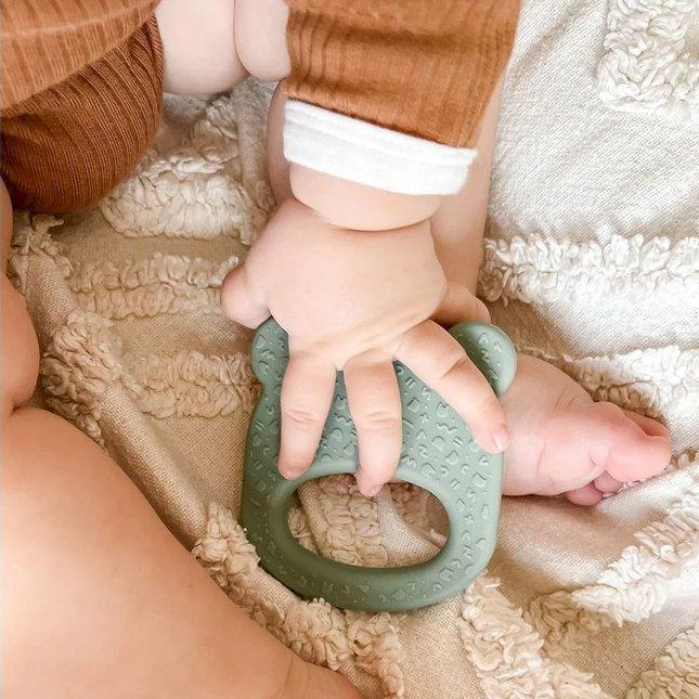 • Mordedor de silicone verde em forma de rosto de urso