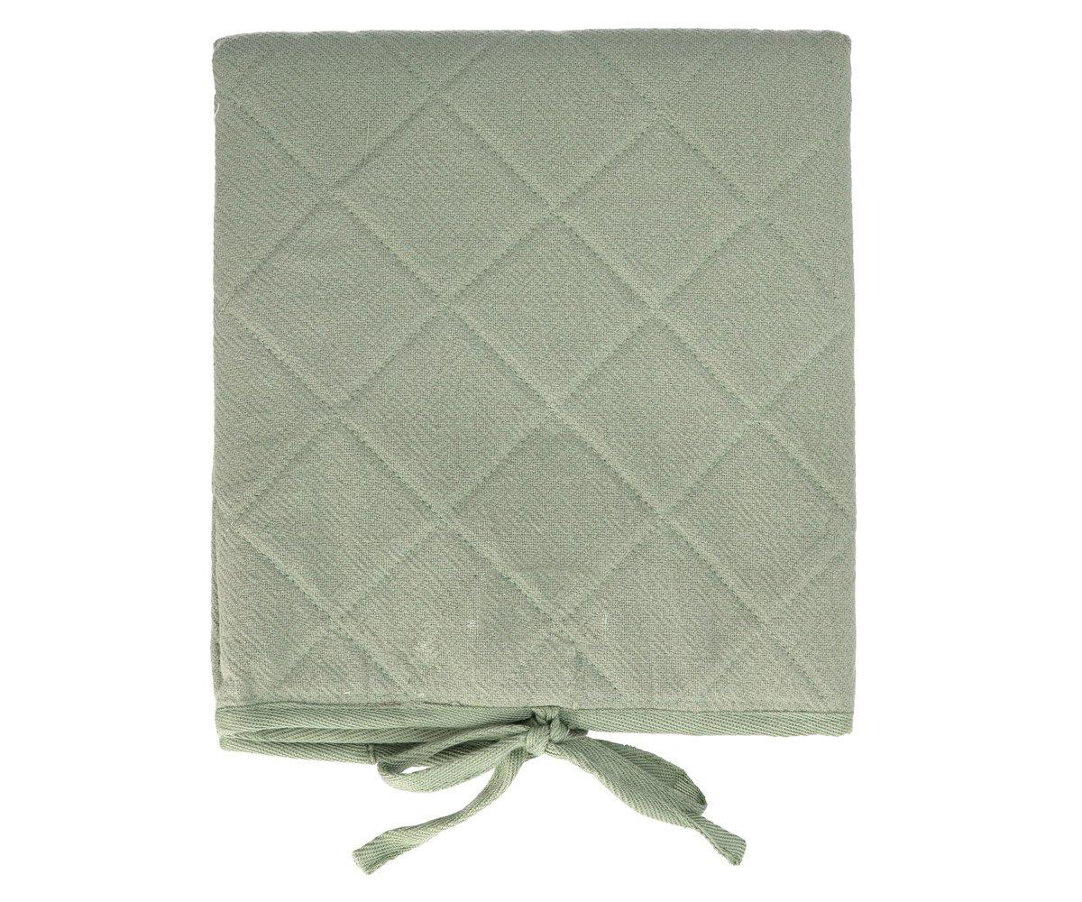 • Almofada verde clara com padrão de losangos e fitas para amarração