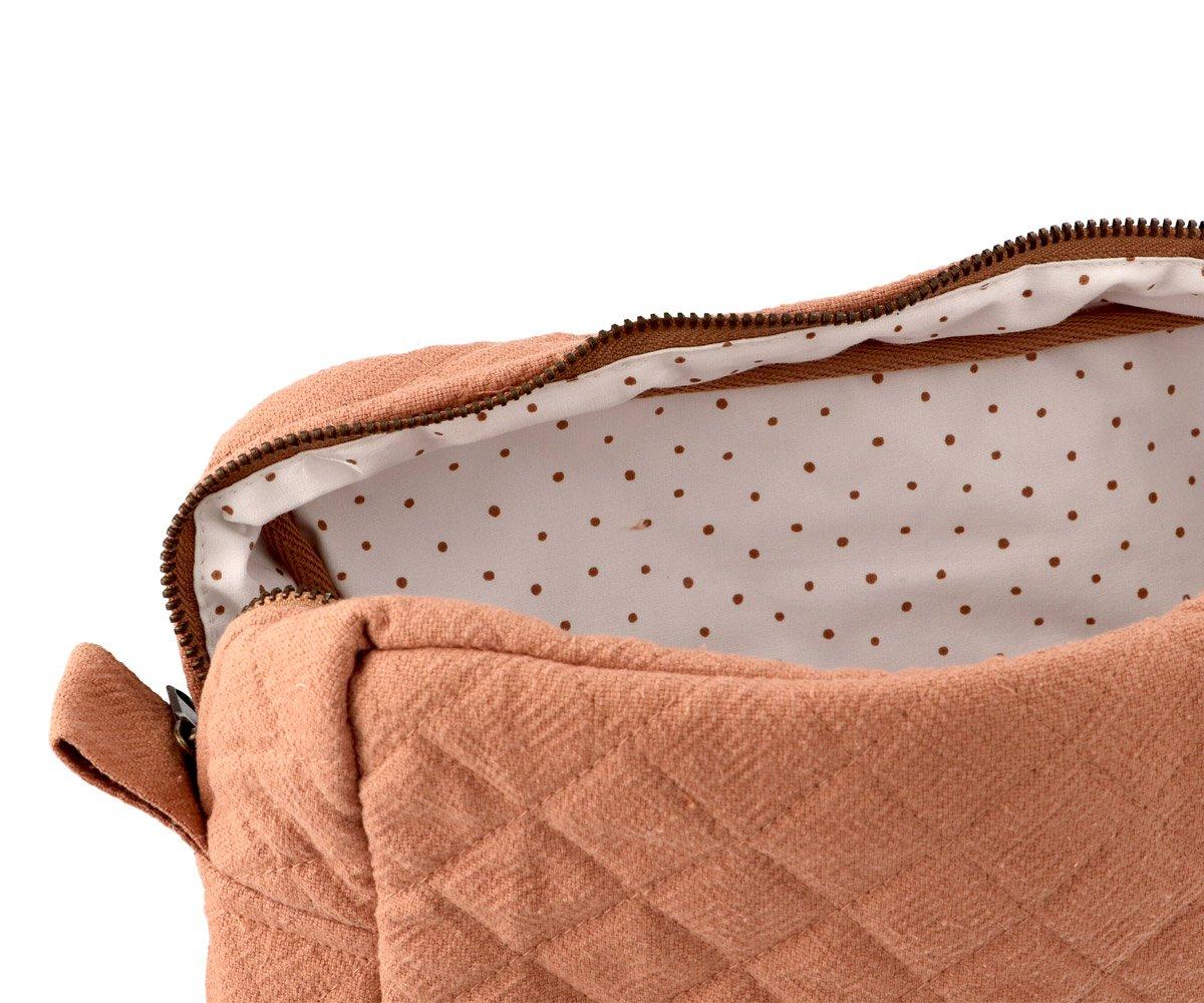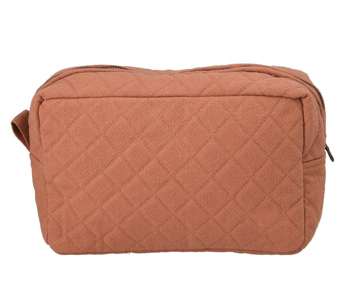 • Necessaire retangular em tecido matelassê cor de tijolo com fecho de correr