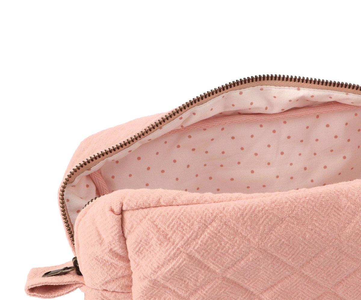 • Necessaire retangular cor-de-rosa em tecido acolchoado