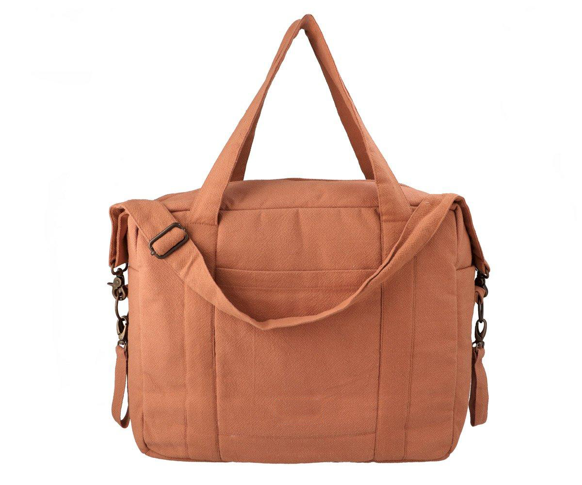 CARACTERISTICAS • Composição: 100% algodão; • Interior: algodão impermeável; • A bolsa mede aprox: largura 51cm x altura 32,5cm x profundidade 12cm; • Acolchoado; • Fecho de zíper; • Alça de ombro ajustável e removível de 35 cm de comprimento; • 2 alças curtas; • 2 alças curtas para pendurar no carrinho; • Pode ser lavado na máquina no máximo 40º; • Exemplos de fotos de interiores. Os pontos internos são da mesma cor do tecido externo da bolsa.