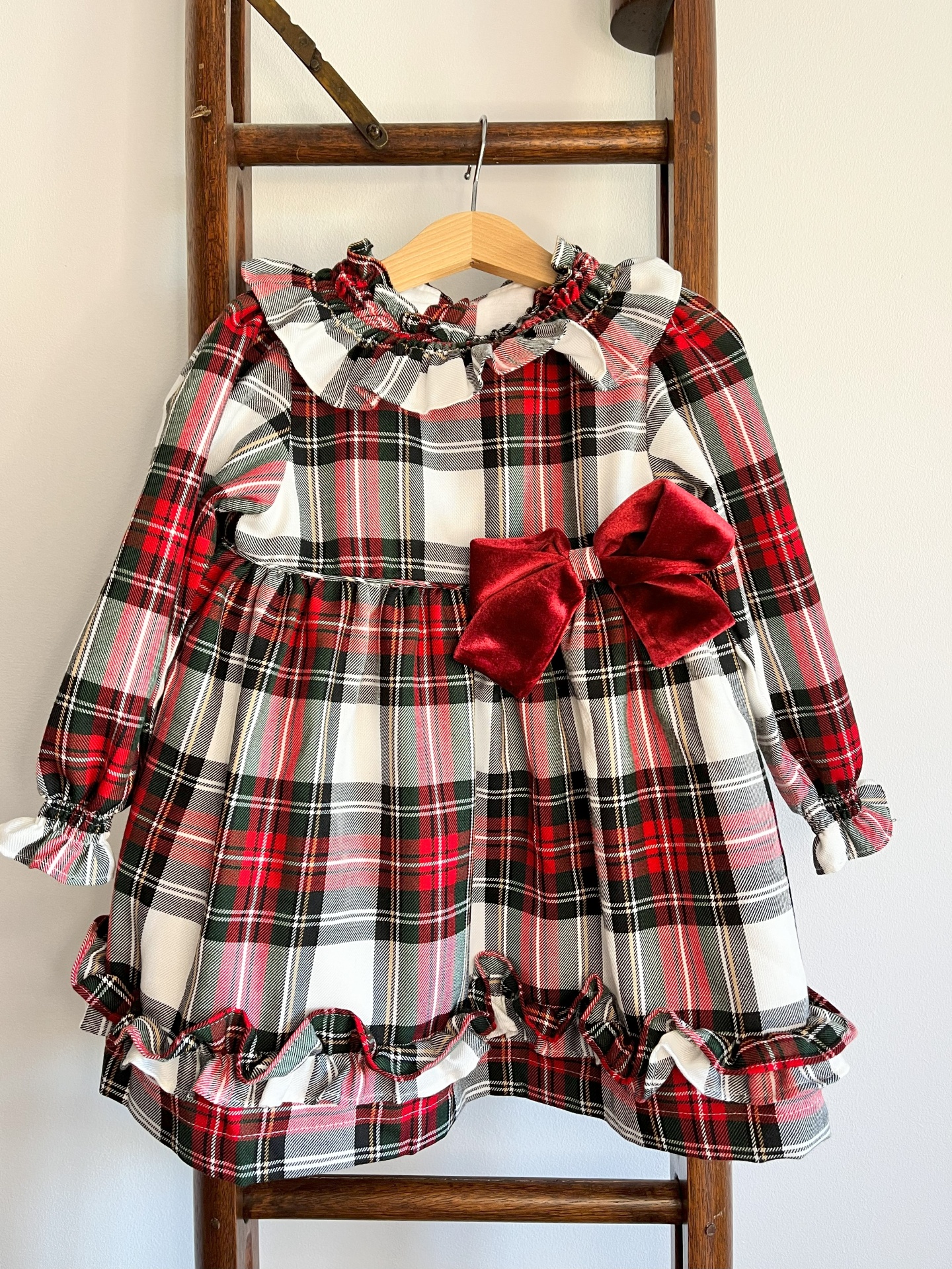 • Vestido infantil xadrez vermelho com laço vermelho e folhos