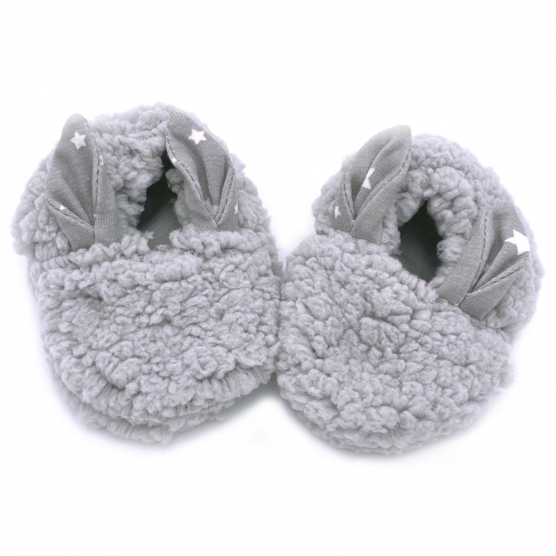 Pantufas de bebé cinzentas felpudas com orelhas decorativas e estrelas brancas