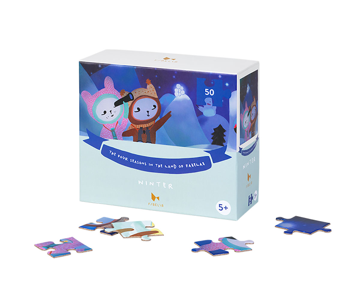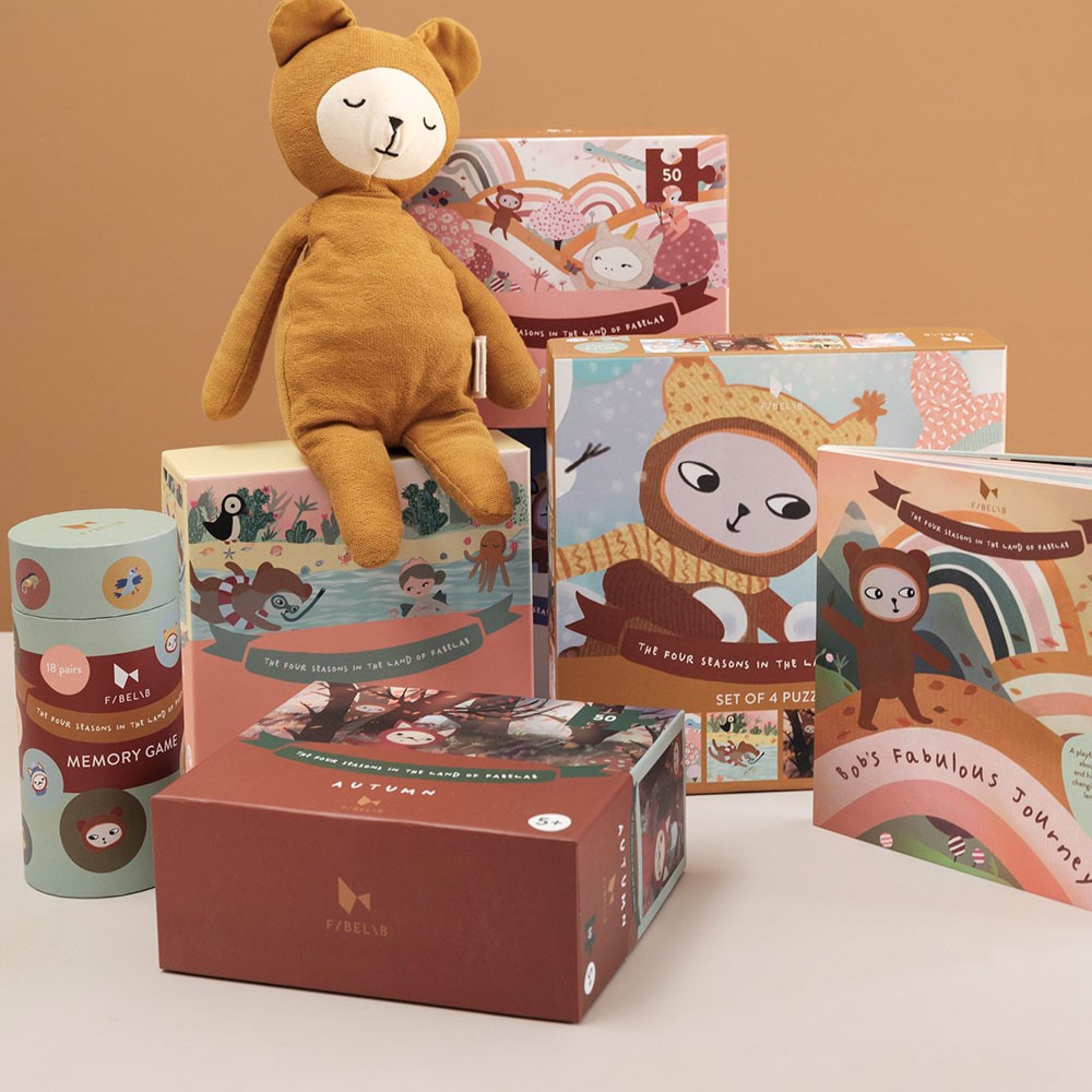 ♡ Fabelab’s new Puzzle provides children with skills and cognitive learning benefits while introducing your child to a season (Spring, Summer, Autumn or Winter) in the land of Fabelab together with Bob the Bear and all his fantastic friends. The Puzzle contains 50 pieces and is for children aged +5.