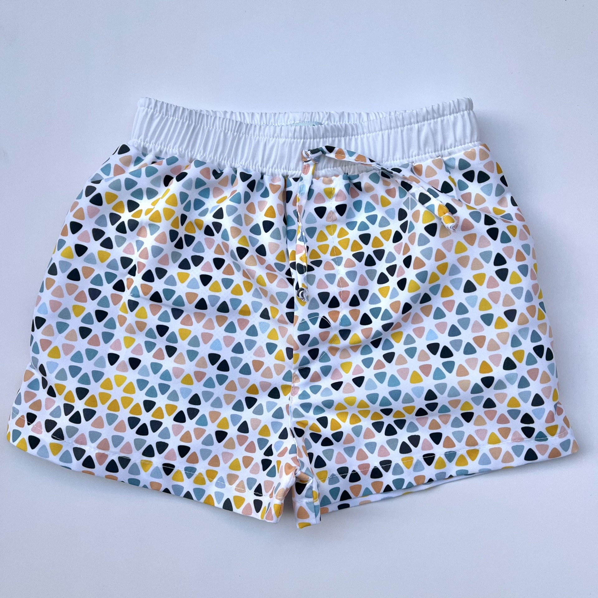 • Roupa de banho com padrão colorido de triângulos arredondados