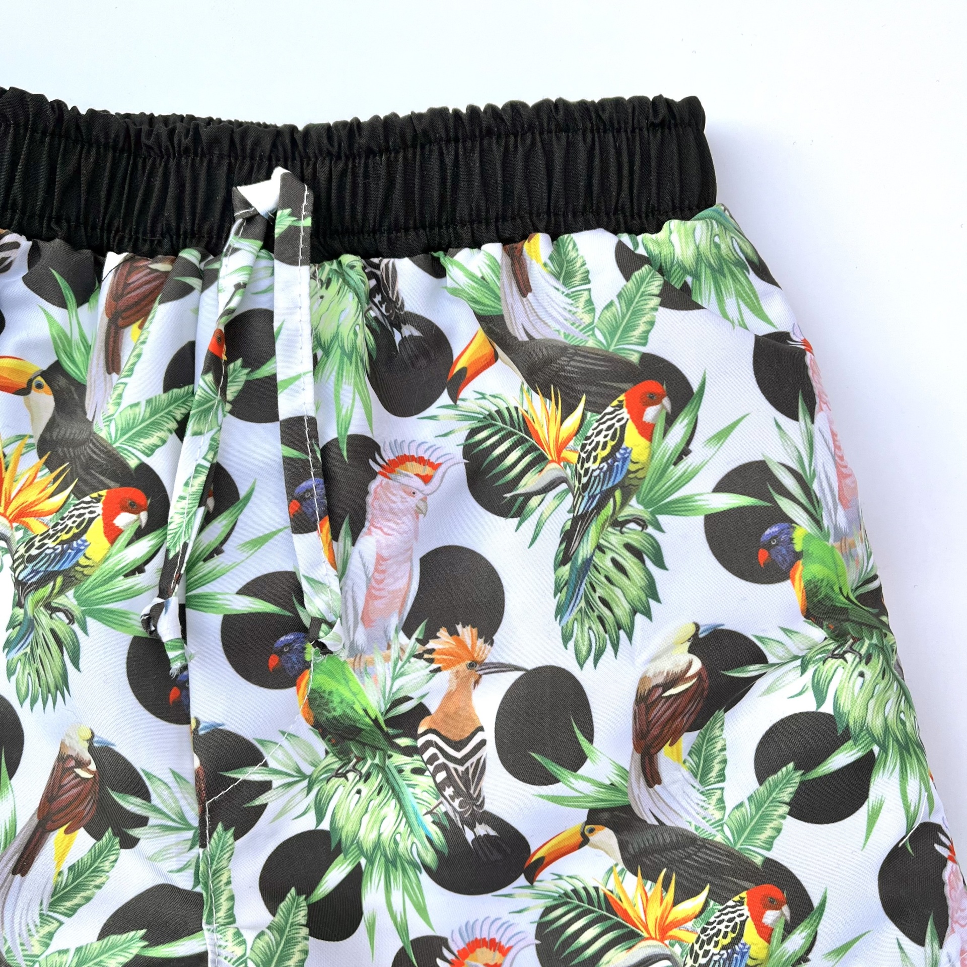 • Calções de banho com padrão tropical colorido e cintura preta elástica