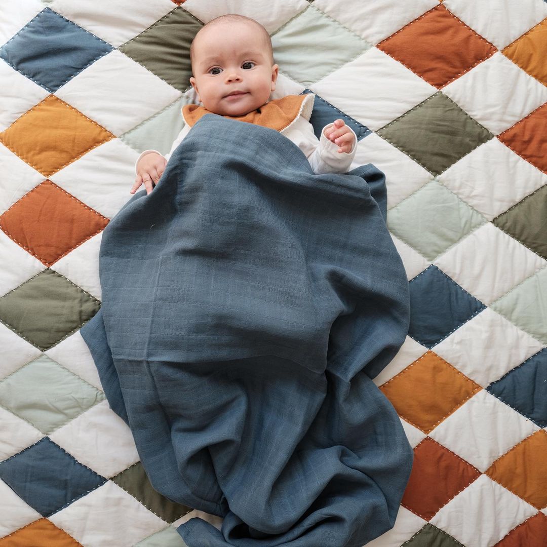 ♡ Fabelab's big, super soft and delicate swaddles are made from organic cotton and have so many uses. Wrap the Olive Swaddle your baby, shield her from the sun in her stroller, or choose your favorite colour to suit your style and wrap it around you as a scarf!
