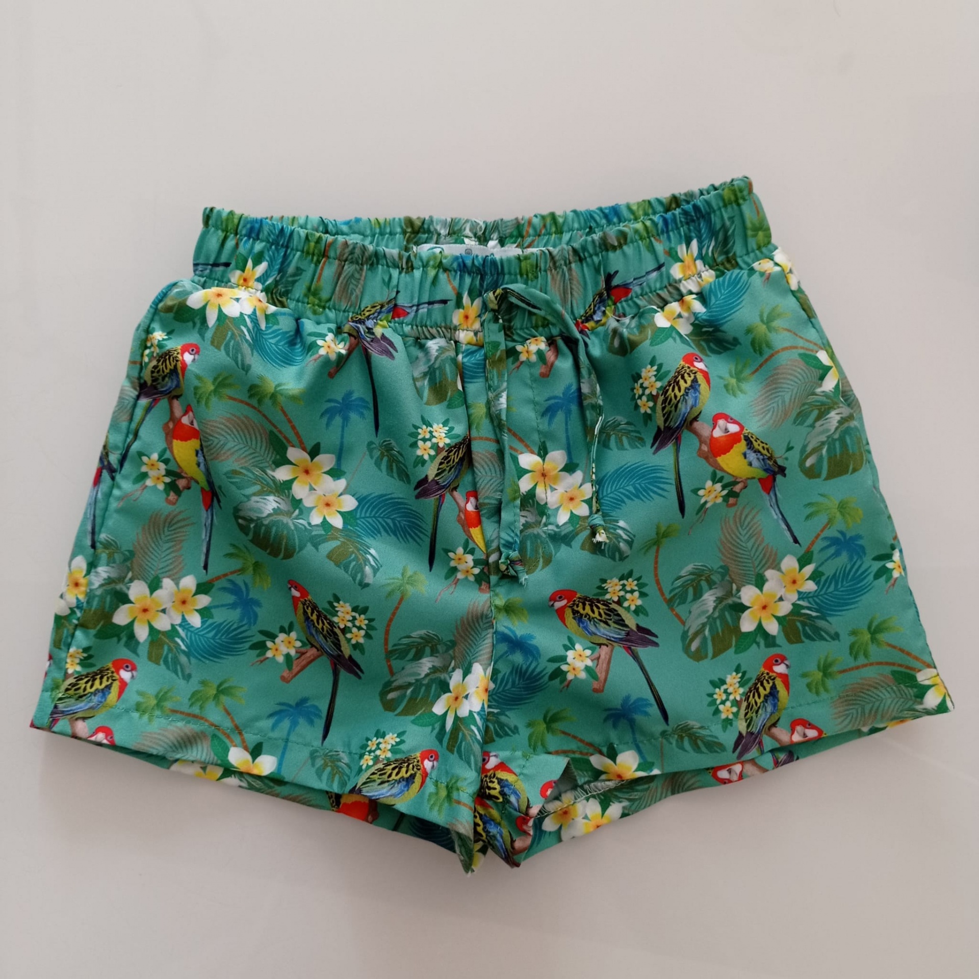 • Calções de banho tropicais verde com papagaios e flores