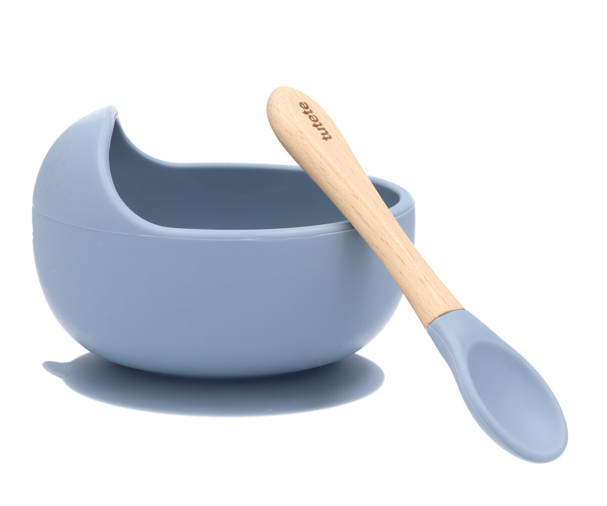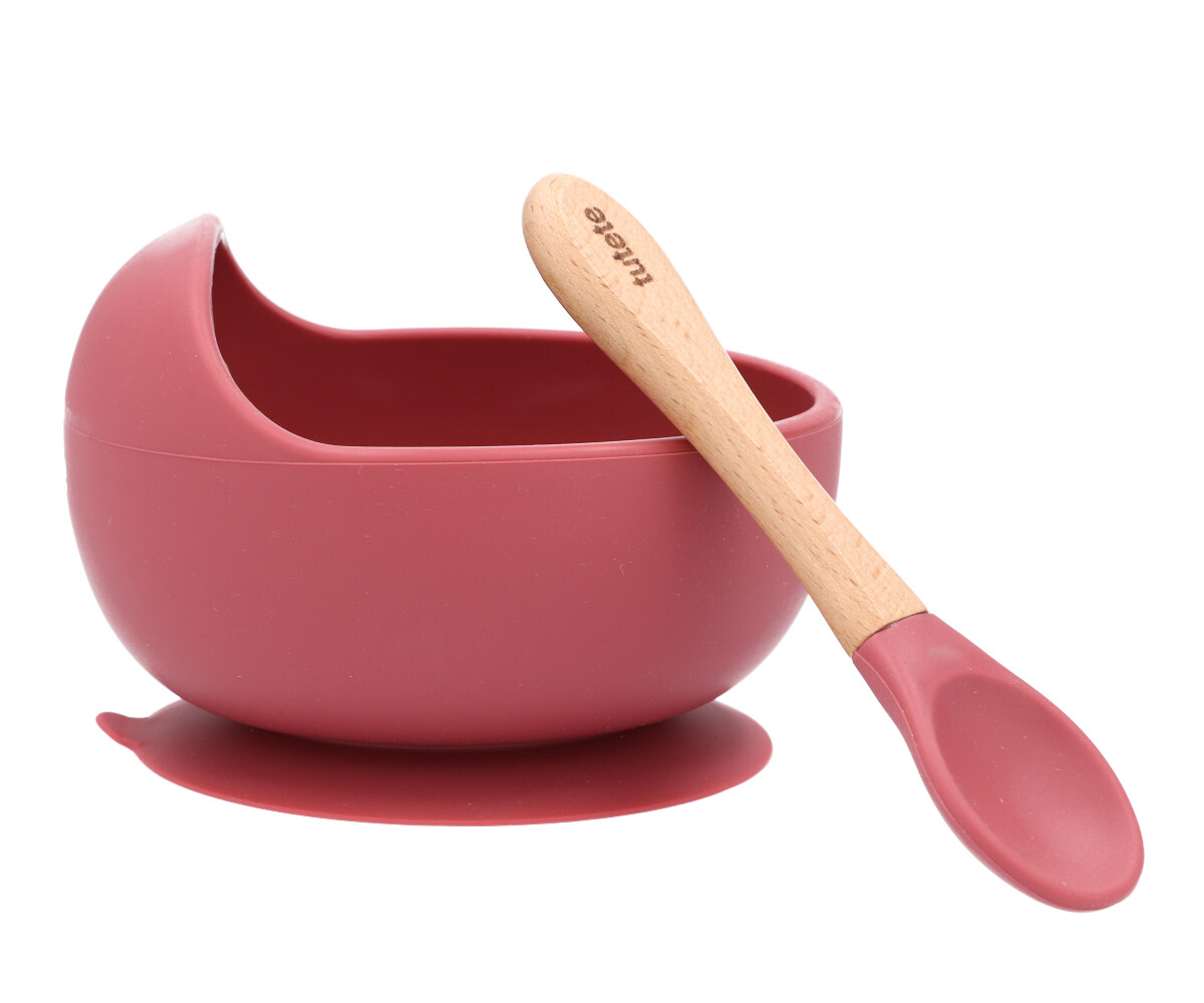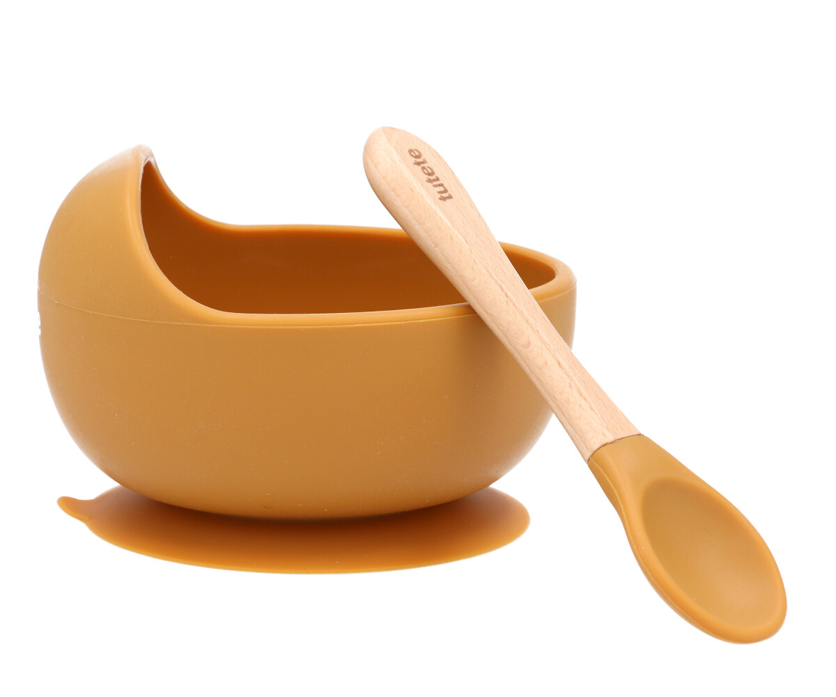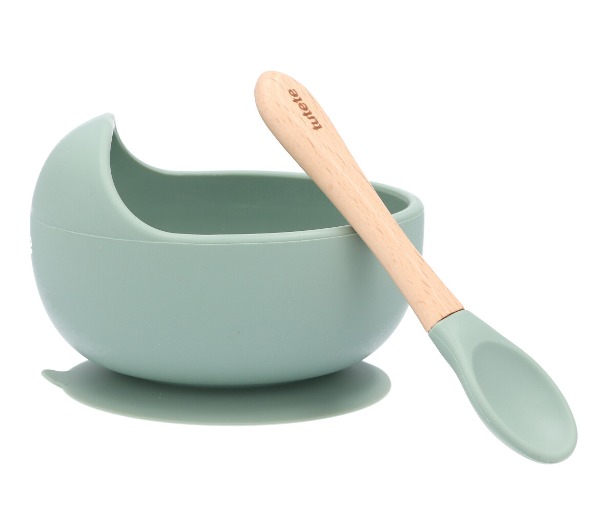 Characteristics • Antibacterial material: 100% food grade silicone and wood; • Capacity: 250ml; • The bowl is dishwasher and microwave safe; • The spoon must be washed by hand with soap and water; • From 4 months; • BPA free.